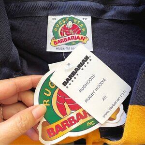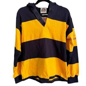 Barbarian Yellow / Blue Striped Hooded Rugby Jersey - XS, unisex fits oversized!