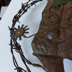 Barbed Wire Cowboy girl western Wreath 12" Metal Spur Holly Rustic Farmhouse