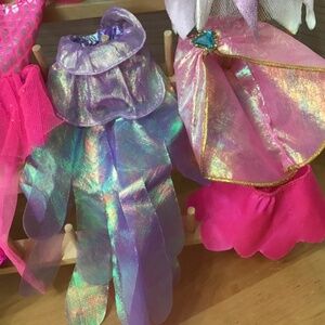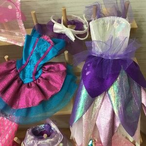 Barbie Bubble Fairy as a Ballerina with all her fun outfits! The doll does have a crack high up in her neck and she does still spin. The clothes are in good played with condition and there is extra bubble fairy outfit in purple. Bundle Barbie to save on shipping.