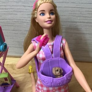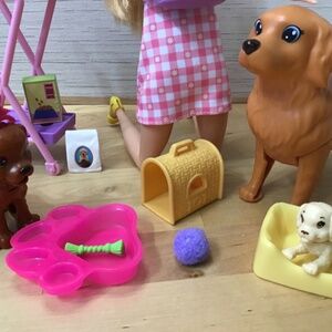 This curated group has Barbie making Playdoh bones for her fur friends party! The mommy dog even has a baby! Everything is good used played condition. Playdoh is not included. Bundle Barbie to save on shipping.