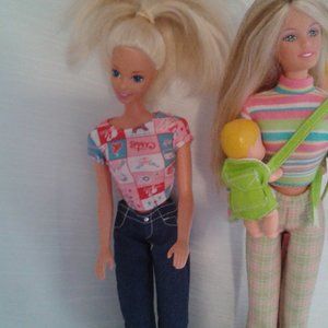Cool Sitter Teen Skipper Doll with 4 Babies 1998 and added Big Sister Barbie