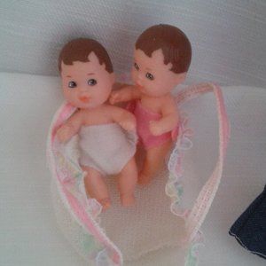 Teen Skipper with 4 babies to look after, 2 in a green over the body baby carrier and 2 little darlings in a carrying basket. Comes with accessories shown as well as big sister Barbie to help ease the load.