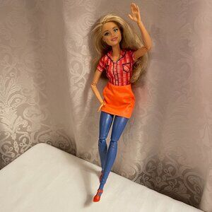 Spin N' Ride Barbie has a fully articulated torso and bendable knees. One ankle has some discolouration (see photo). Fashionista Ken is in excellent condition. The Fashionista doll with brown hair and darker complexion has neck cracks that are not visible unless her head is fully tilted (see photos).