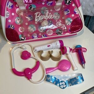 Tools include Barbie stethoscope, ear scope, syringe, bandages, brush & mini flashlight to inspect eyes