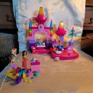 Missing tiny piece on top of Castle, but this set comes with lots of extras! A teeny tiny puppy, extra pieces and more Barbies!!! See pictures and video for all inclusions, conditions and more! Pre-played, open box, so it has wear. All pieces shown carefully stowed away inside bags, and box is taped up!
