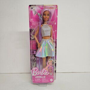 Embrace your inner pop star with the Barbie You Can Be Anything Doll! This fabulous doll comes with a microphone stand and accessories, perfect for imaginative play. Model number FXN98, this doll is brand new and never removed from the box (NRFB), making it a pristine addition to any Barbie collection.