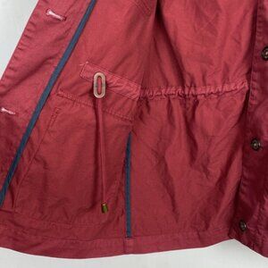 Barbour 6 Saltwater Overshirt Jacket Coat - Mulberry Burgundy Red - Unlined & Unwaxed - Cinch-waist - Tortoiseshell Button Closure - Buttoned Cuffs - 4 Front Pockets - Snap Button Flaps Pockets - 100% Cotton - Excellent Preloved Condition - Minor Signs of Wear - See pictures for detail - Size US6 UK10
