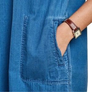 Mid wash vintage denim short sleeve shirt dress with side & chest pockets.