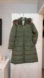 Stylish olive puffer coat by Barbour. Features cozy faux fur hood. Ideal for winter warmth.