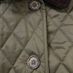 Stylish quilted jacket. Features button closure. Classic design by Barbour.