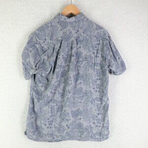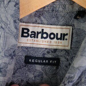 Barbour Shirt Mens Small Blue Floral Button Up Lyocell Linen Blend Short Sleeve