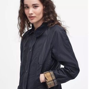 Barbour beadnell waxed jacket in navy, size US 6/ UK 10