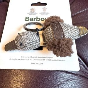 This adorable Barbour duck keyring is made of tweed and tartan fabric.