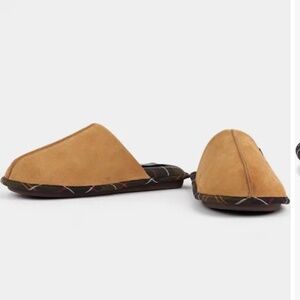 The Barbour Foley Slippers showcase a timeless design, perfect for relaxing around the house or in front of an open fire. With a tartan lining and trim, these slippers are crafted from 100% suede for a luxurious addition to laid back days. A metal Barbour branded trim effortlessly finishes off these slippers.