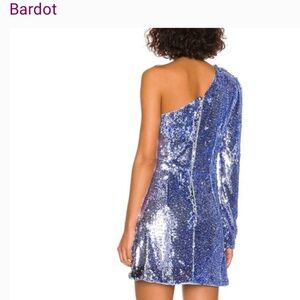 Bardot Revolve Blue Sequin One Shoulder Mini Dress