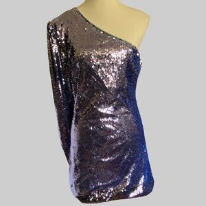 Bardot Blue Sequin One Shoulder Party Prom Wedding Guest Mini Dress- Sz-S(4)