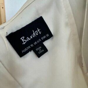 Striking and sculpted designer dress by Australian brand Bardot. The cream-and-black patterned fabric is structured and dramatic, with a boned bodice that defines the shape beautifully. Fully lined with a visible back zip and a bold front slit. A confident, high-quality piece — made to stand out at cocktail parties, formal nights, or anywhere you want to feel unforgettable.