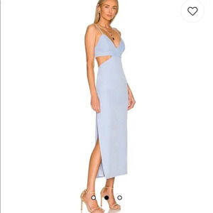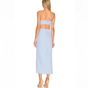 Bardot Cut Out Slit Elegant Midi Fitted Party Dress in Light Blue Size XXL.
