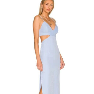 Bardot Cut Out Slit Elegant Midi Fitted Party Dress in Light Blue Size XXL.