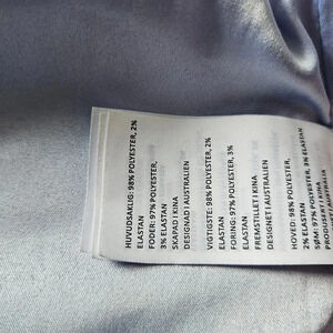 In pale blue, the dress has a slit up one leg, adjustable spaghetti straps, and zips at the back. It's made from easy-care polyester blend.