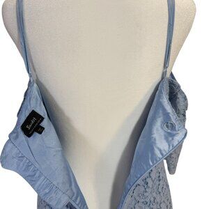 Bardot, lace dress, cold shoulder, off the shoulder, midi dress, light blue dress, dusty blue, cocktail dress, formal dress, wedding guest, prom, special occasion, elegant, romantic, size M