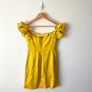 Bardot Linen Blend Ruffle Strap Mini Dress Marigold Yellow Size Small/6