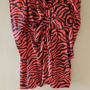 Bardot Red Zebra Print V-Neckline Long Sleeve Wrap Style Mini Dress Size US 6.