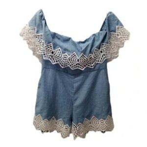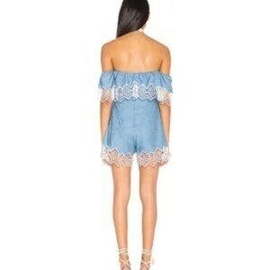 Bardot Revolve Runaway Romper Sky Blue Chambray White M