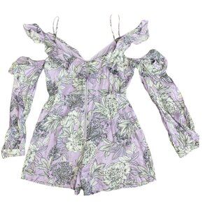 Bardot Romper sz 8 Purple Floral Edrie Frill Cold-shoulder Spring Bloom NWT new