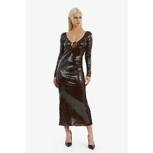 Bardot Verona Long-Sleeve Sequin Slim Midi Dress Brown 8.