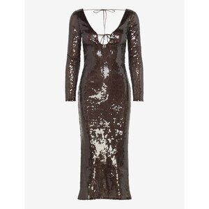 Bardot Verona Long-Sleeve Sequin Slim Midi Dress Deep Brown 12. Brand new tags.