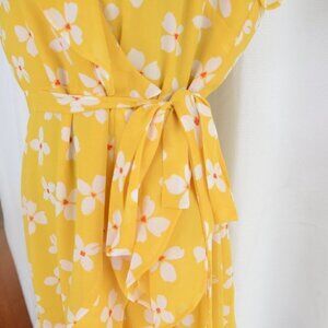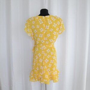 Bardot Yellow Abstract Daisy Yellow Wrap Short Sleeve Mini Dress Sz 8