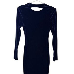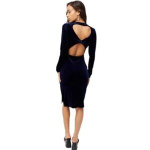 Bardot navy blue Mila velvet twist back cutout long sleeve midi dress size S