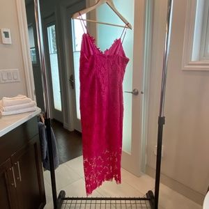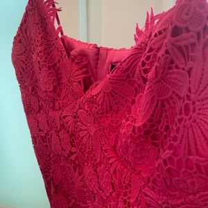 Gorgeous Bardot brand cocktail dress. Perfect for spring and summer events! Worn once, gently. Looks a little boxy in photo but form fits to an hourglass shape, adjustable spaghetti straps. Size 10 L-hits below the knee if 5'7 or under, lined to the mid thigh. Woven fabric in a floral design.