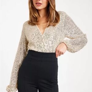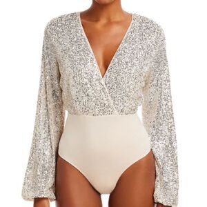 Has a hook and eye closure at neck. Can be worn unhooked to give this bodysuit a plunging neckline as seen in 1st photo