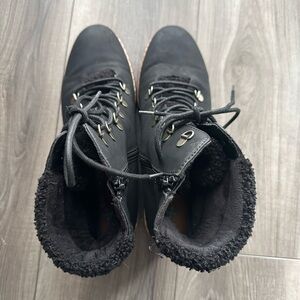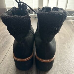Experience the perfect blend of style and functionality with these BareTraps black lace-up boots. Featuring a sleek, minimalist design and sturdy construction, these boots are ideal for both casual and semi-formal occasions. The contrast between the black upper and light-colored sole adds a unique touch to your ensemble.