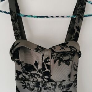 Words don't do this dress justice. Heavy weight grey fabric, black velvet floral design, empire waist. Like new condition. Handmade in Vancouver, BC.