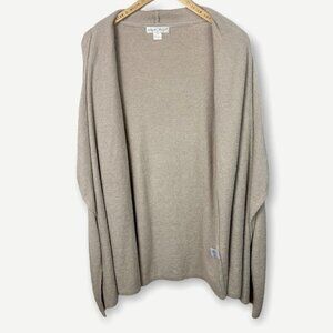 Barefoot Dreams CozyChic Bamboo Calypso Wrap Cardigan in Women’s Size Small / Medium and Beige. Style #436. Soft and silky knit. Open front that drapes nicely. This soft, sophisticated long sleeve wrap can be worn many ways. 75% nylon and 25% rayon from bamboo. Machine washable.