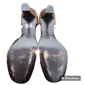 Gorgeous Italian leather Via Spiga t-strap closed toe 9M brown leather, 3 1/2" heel with beautiful perforated detail at the closed toe. Barely worn.