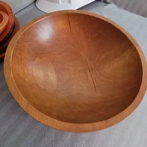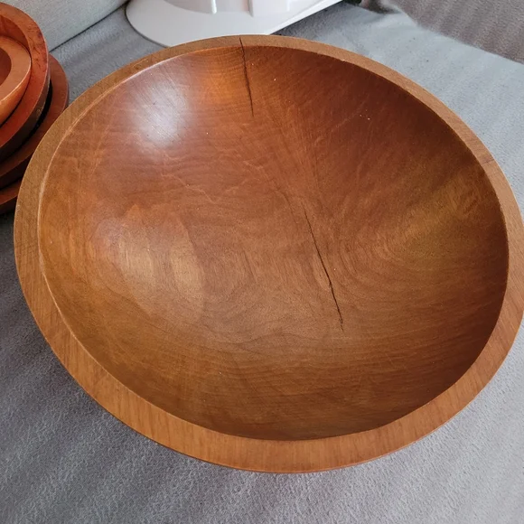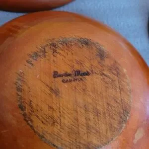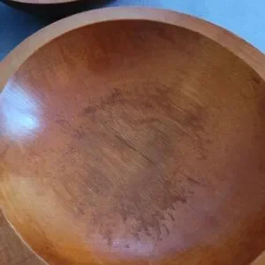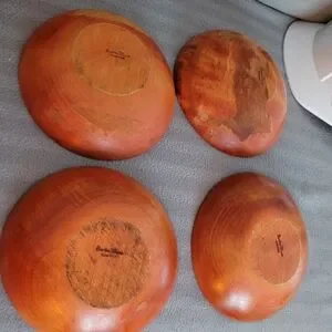 Vintage bowls show signs of wear, scratches, and scuffs.