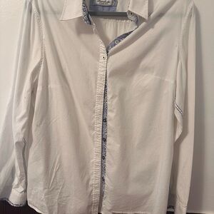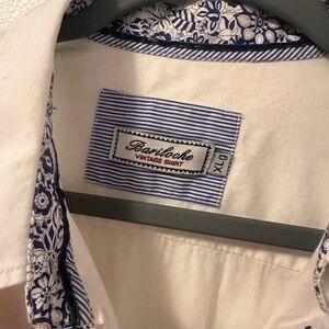 Bariloche White Shirt – XL, Vintage Style with Floral & Stripe Contrast Trim