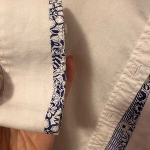 This classic white shirt by Bariloche brings timeless sophistication with a twist. Thoughtfully detailed with blue-and-white floral print and striped contrast trims on the collar, inner cuffs, and placket, it offers just the right amount of personality. Whether styled buttoned up for a crisp look or casually rolled at the sleeves, this shirt adds charm to any outfit.