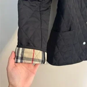 Black quilted with novacheck lining (feels like polyester outer shell with cotton lining)