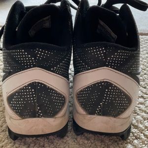 Men’s 7 baseball cleats, also fit as a women’s 9. They have been worn and are, therefore a little dusty and creased. There is also a small bit of tearing around the ankle of the left heel. None of this will impede there use, and would not be visible when worn!