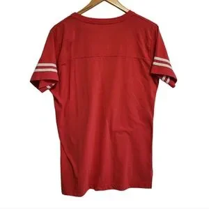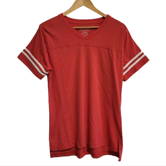 Red heather v-neck baseball tee with white stripes in XL. In excellent condition. perfect for a casual look or for crafting.