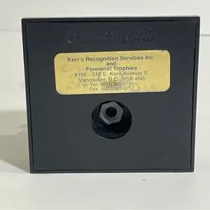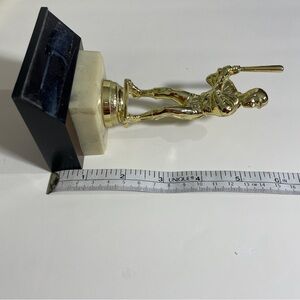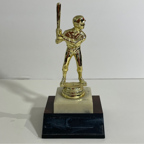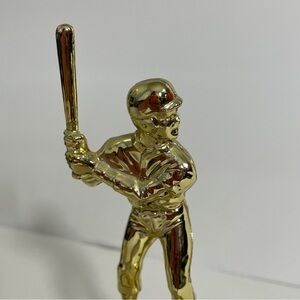 6.5” tall. Plastic figure. Name plate removed and has some glue residue.