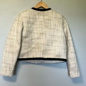 Elevate your style with the Ba&sh Women's Tweed Jacket. This chic cream jacket features elegant black trim, perfect for any occasion. Experience comfort and sophistication with this timeless piece.