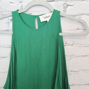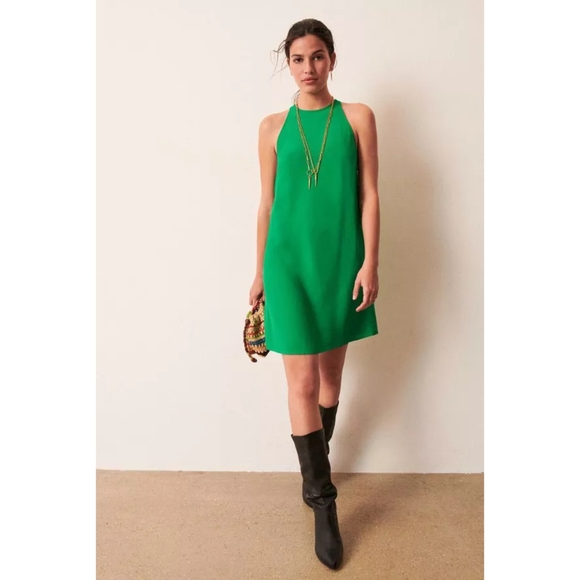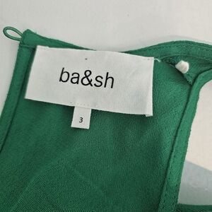 The Fiam dress from Ba&sh is a trapeze style mini dress. It has a high neckline and a keyhole back with button closure. It is in good used condition.