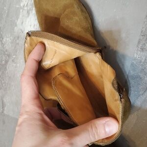 Closes with a zipper on inner side of the boots. Signs of wear around the boots as seen on pictures (stains and stratches). No hole. Non smoking house.