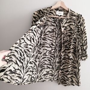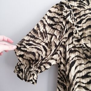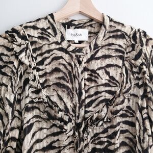 Ba&sh Tiger Print Ruffle Accent Button Up Blouse with Half Sleeves Ba&Sh 0 XS